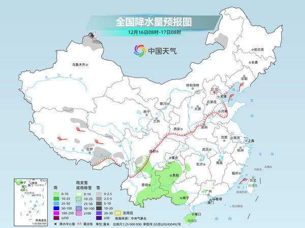 中央气象台预计,今天,内蒙古东北部、新疆北疆北部、西藏东部和北部、川西高原南部等地部分地区有小到中雪或雨夹雪,其中,新疆北疆北部局地有大到暴雪。西南地区东南部、广西西部和南部、海南岛、台湾岛东部等地部分地区有小雨。